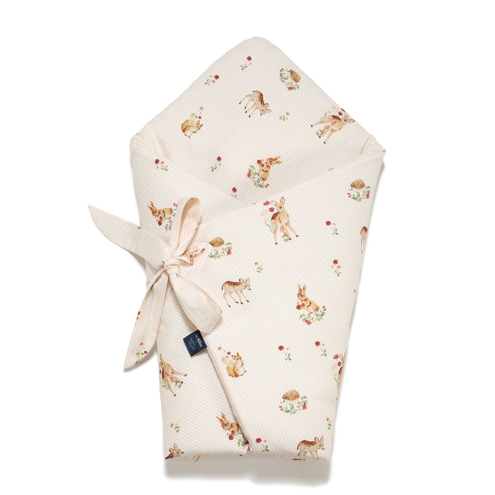 Eine klassische und bezaubernde Einschlagdecke BAMBILAND – S – 75 x 75 cm oder Babyhörnchen, das Ihr Baby ab dem Tag der Geburt umhüllt. Die Hörnchen geben dem Baby das Gefühl von Geborgenheit wie in Mamas Bauch, beruhigen das Baby und erleichtern ihm das Einschlafen. Es ist aus hochwertigster Baumwolle gefertigt und mit zwei Füllschichten gefüllt. Die erste Schicht ist eine Standard-Hörnchenfüllung, die steif genug ist, um das Baby von den ersten Momenten an sicher und fest zu halten. Die zweite Schicht ist viel dünner und luftiger, damit es für das Baby bequemer ist. In das Hörnchen sind ausserdem Bänder eingenäht, die es ermöglichen, die Grösse zu verstellen.